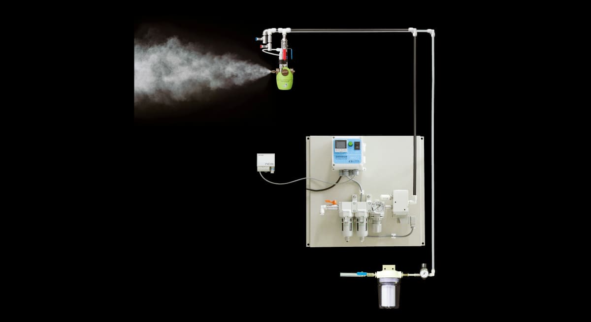 • Energy-saving pneumatic humidifier kit that produces “Dry Fog”.