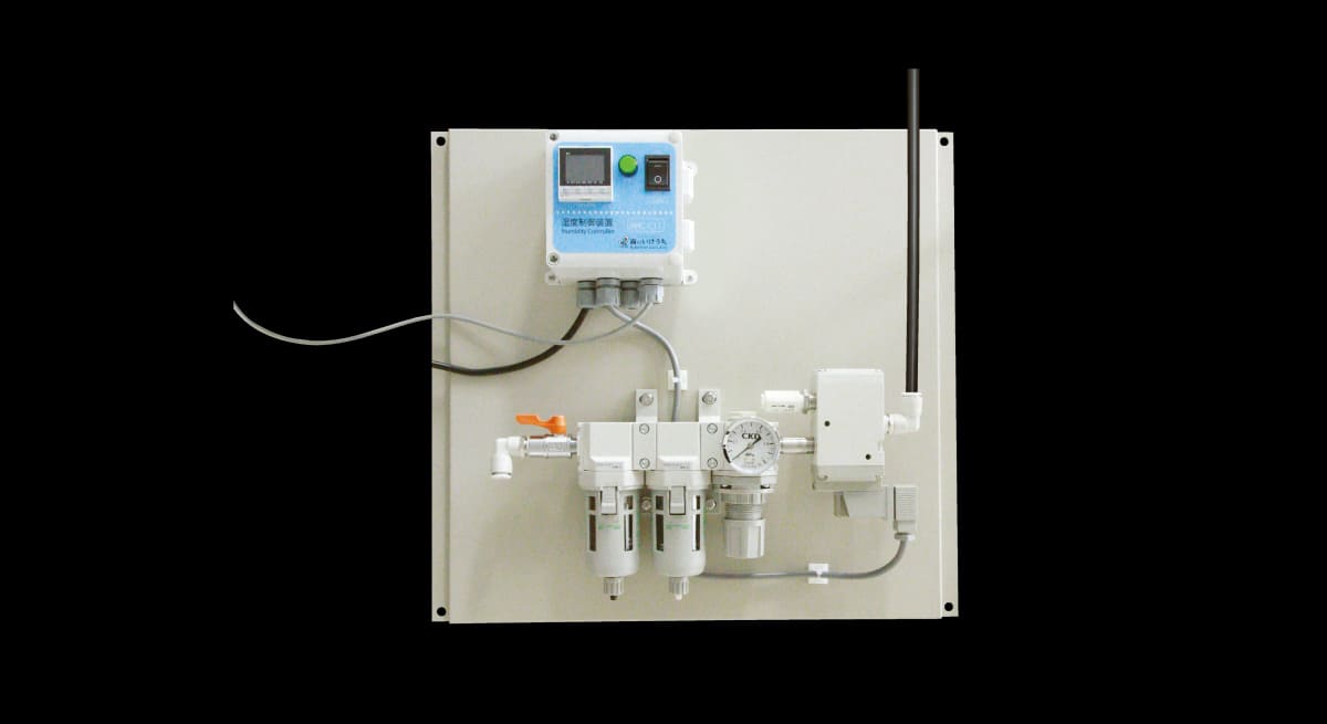 A humidifier kit, incorporating AKIMist-E Dry Fog humidifier, a controller unit, a water filter unit, and a piping unit.