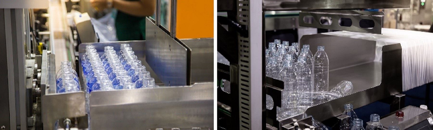 In this process, finished bottles are aligned on the conveyor and pushed directly onto pallets. However, during dry conditions, static charges caused the bottles to cling together and topple in sequence.
