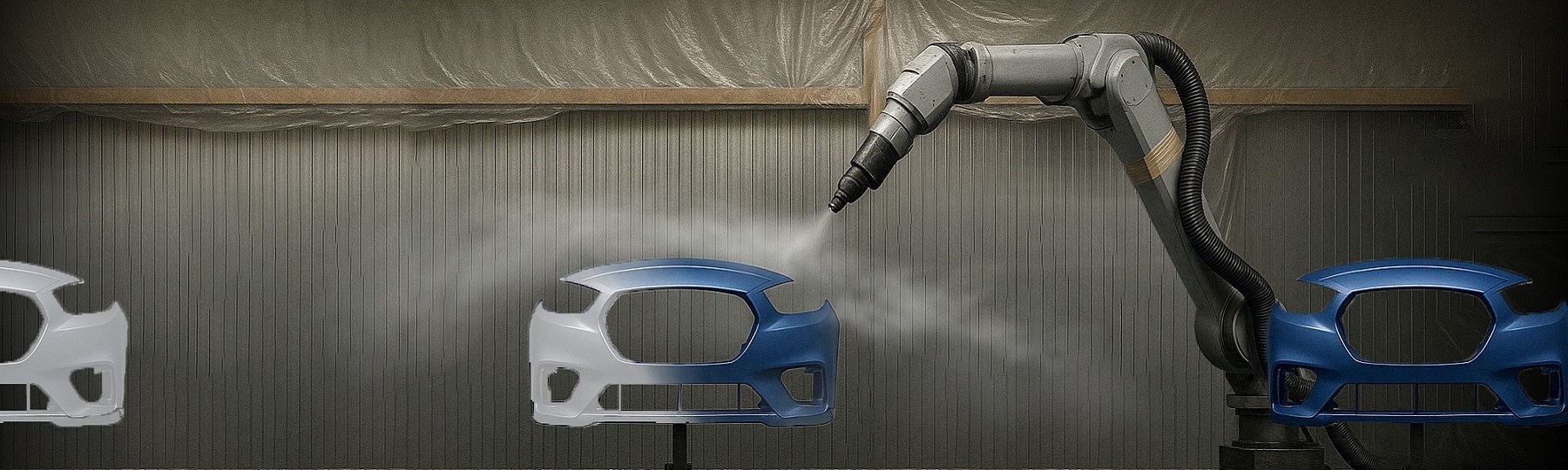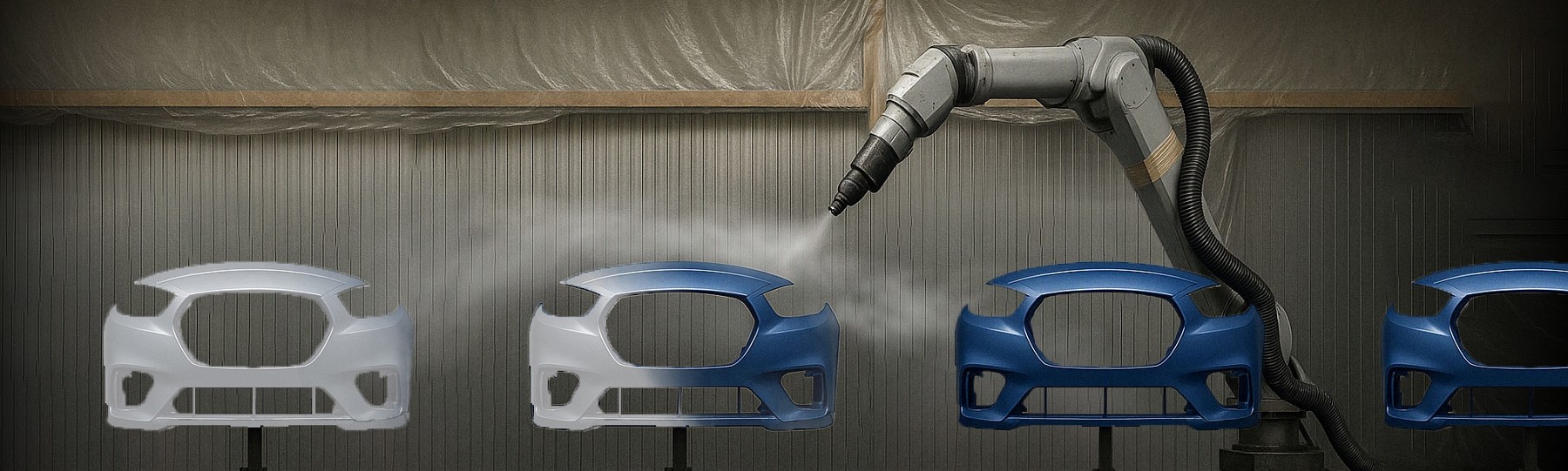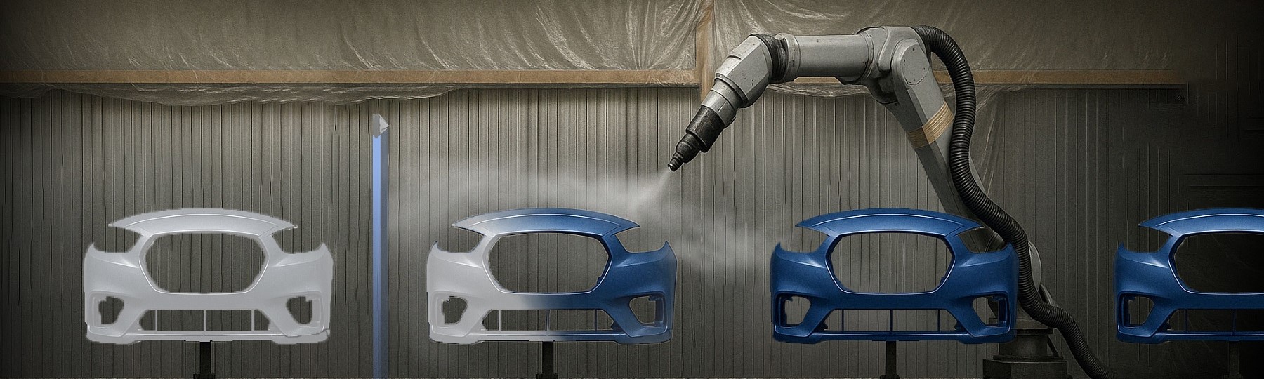 Reducing the spacing to 500 mm resulted in overspray reaching the next bumper awaiting painting.