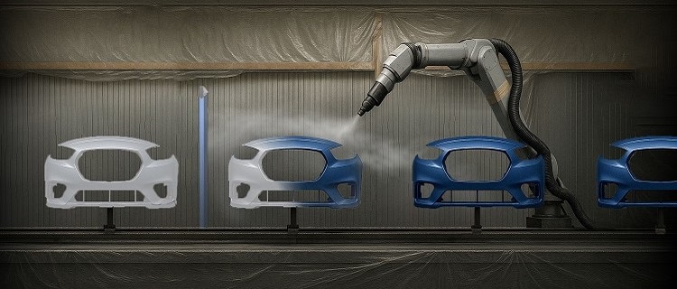 Because the bumpers were now positioned much closer to each other, overspray from the paint-spraying robot reached the next bumper waiting for a different color, contaminating the surface and causing coating defects.