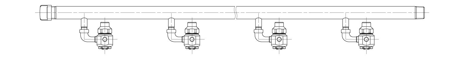 Note: The wavy lines indicate omitted sections. In practice, five nozzles are installed on the header.