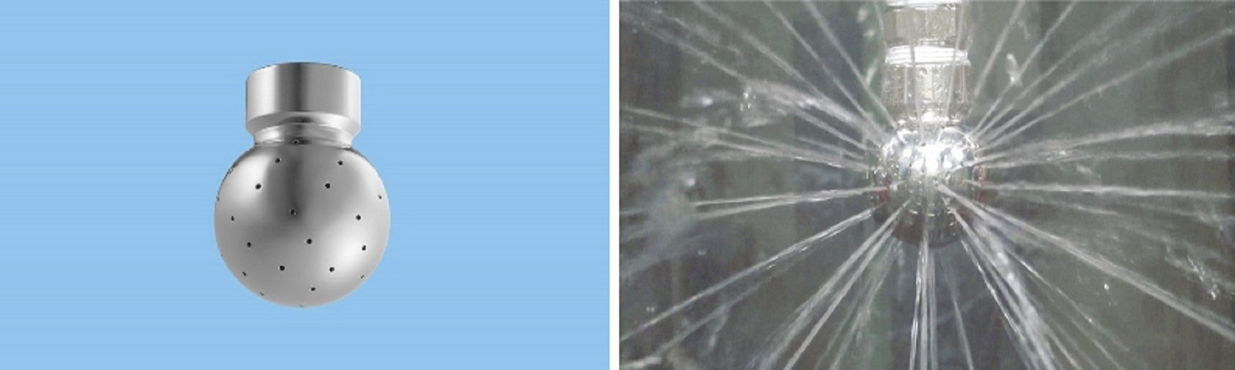 From left: 2D rotating nozzle, 3D rotating nozzle, shower ball nozzle