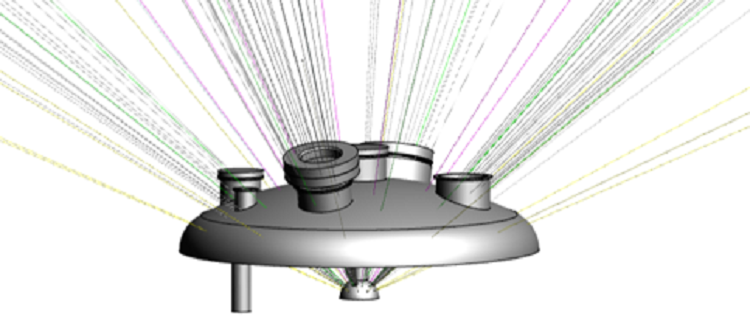 We then created spray trajectory diagrams based on these target areas while carefully reviewing the positions and required number of spray holes.