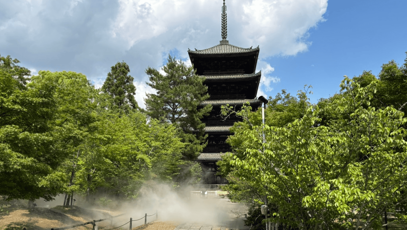 During a recent visit to Kyoto, I had the opportunity to visit Ninnaji Temple, a UNESCO World Heritage site, and see Ikeuchi’s Sea of Clouds system in action first-hand. Founded in 888 AD as the head temple of the Omuro school of the Shingon sect, Ninnaji is renowned for its historical architecture, expansive gardens, and seasonal cherry blossoms that attract visitors from around the world. Nestled in western Kyoto, near the scenic Katsura River, the temple provides a tranquil escape that balances cultural significance with natural beauty.