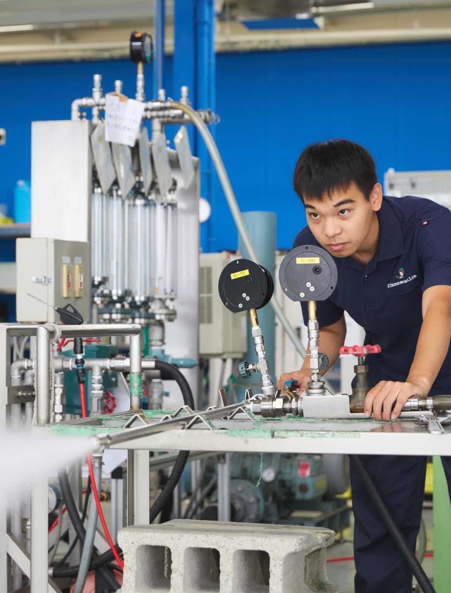 設計図面を現場で実装し、試運転で性能を実証。稼働後も定期訪問で設備を診断し、技術的助言で顧客課題を解決。技術力と対人力を磨きながら、長期的信頼関係を築くフィールドエンジニアです。