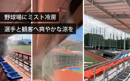 [事例]公営野球場に屋外用ミスト冷房導入|濡れずにひんやり、選手と観客へ爽やかな涼を届けて熱中症を予防