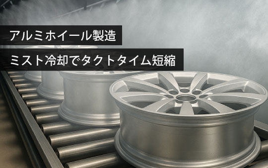 [事例]焼き付け塗装後のアルミホイールをミスト冷却|タクトタイムを劇的に短縮し、作業環境も改善