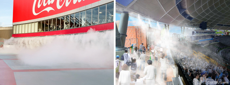 微細な霧の気化熱で熱気が和らぎ、試合を行う選手や観客からは「濡れずに涼しい」と好評を得ています。見た目にも清涼感のある演出となり、夏場の野球観戦を快適に楽しめる環境づくりに貢献しました。