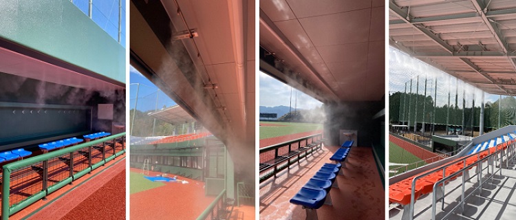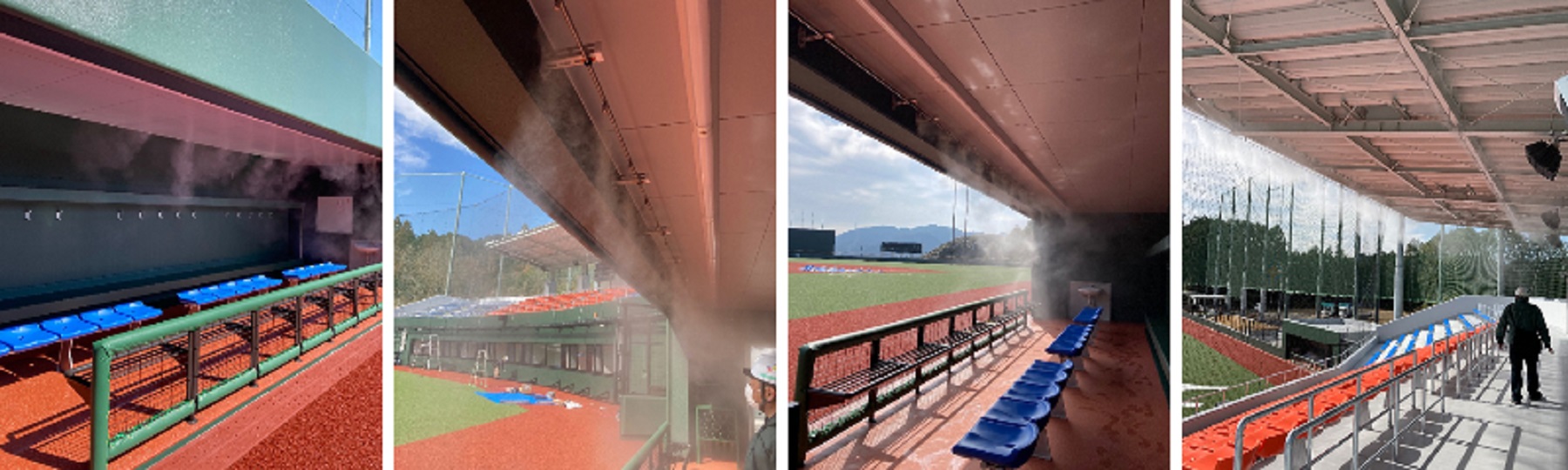 [事例]公営野球場に屋外用ミスト冷房導入|濡れずにひんやり、選手と観客へ爽やかな涼を届けて熱中症を予防