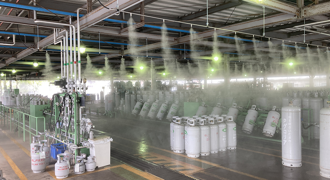 [事例]LPガス充填所|従業員を暑熱から守れ!夏の過酷な重労働を支える屋外ミスト冷房