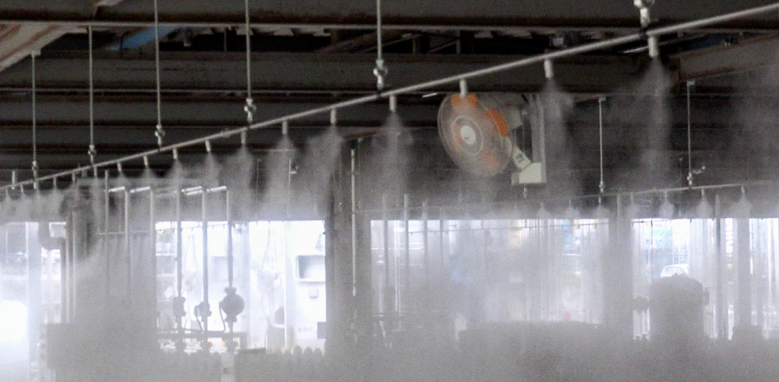 ミストで作業エリアの気温が3~4℃低下