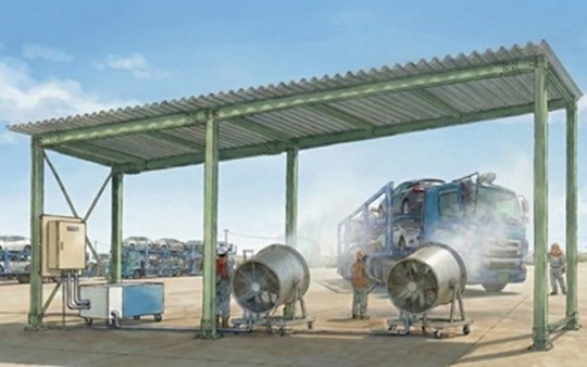 大規模なヤードでは、1日に100便を超えるキャリアカーが発着し、数百台の車両を扱います。現場には車両台数を上回るドライバーや積載補助スタッフが出入りしており、熱中症対策の導入が急務でした。しかし屋外という環境特性から空調設備の設置は現実的ではありません。設備担当責任者さまは有効策を模索しながらも、決定打を見いだせずにいました。