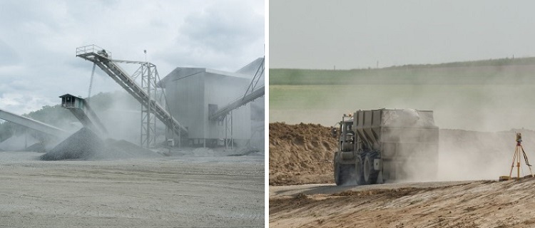 ある採石場では、ストックヤードから発生する粉じん対策に悩まされていました。