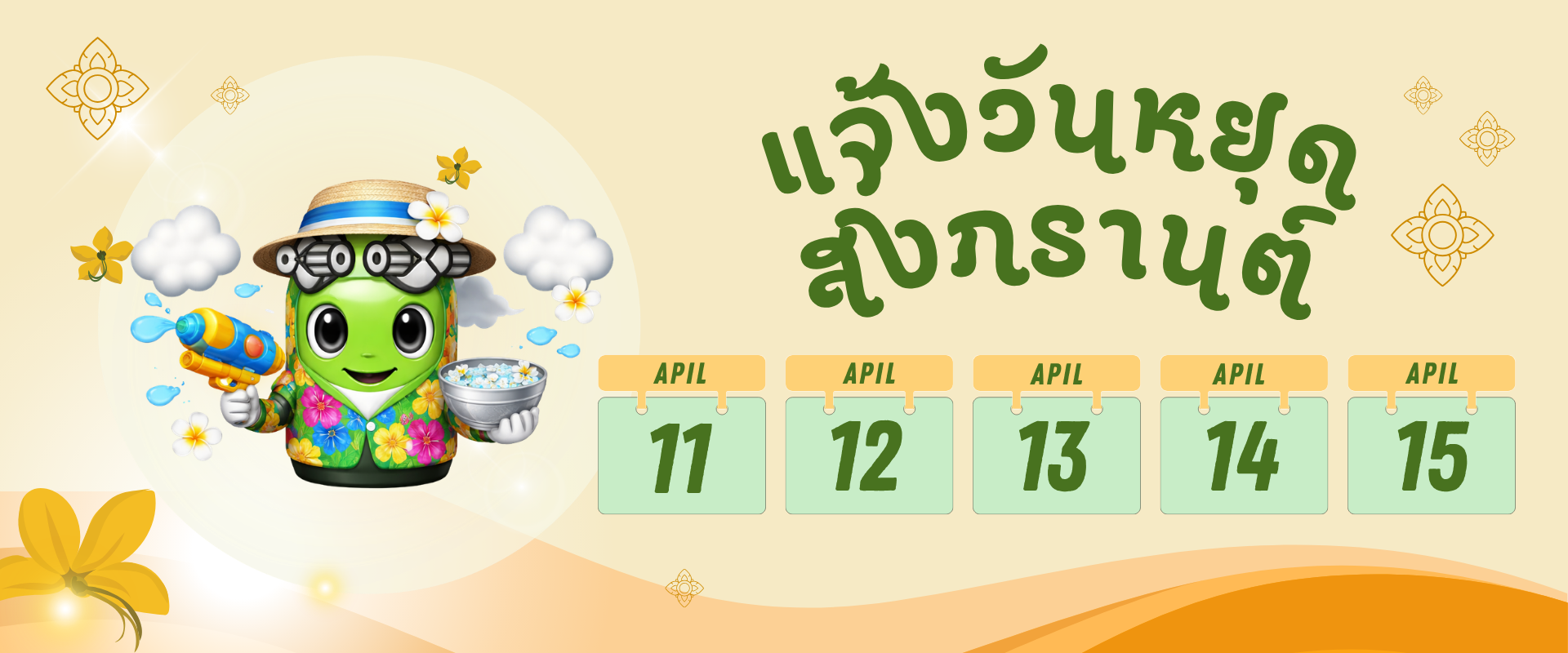 เนื่องเทศกาลสงกรานต์บริษัทฯ จะปิดทำการตั้งแต่วันที่ 11 ถึงวันที่ 15 เมษายน