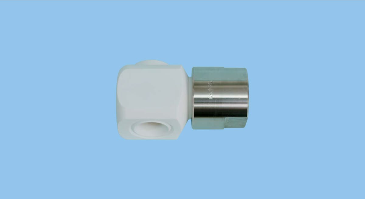 • Nozzle sprays at a 90° angle to the nozzle inlet. This right angle nozzle is suitable for installation in small spaces.