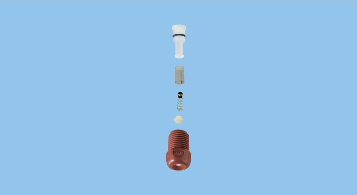 • Ultra-low flow rate hollow cone spray nozzle with the finest atomization among hydraulic nozzles.