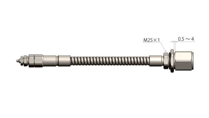 Pictured above is a nozzle with a T-type adaptor. Available in various adaptor types as shown on Pneumatic Spray Nozzles catalog. Also available for the wall mounting type. Contact us for customizable length.