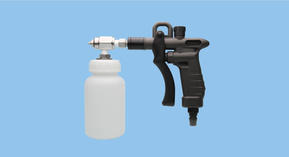 Handy‐type spray unit producing fine atomization. Operable with one hand.