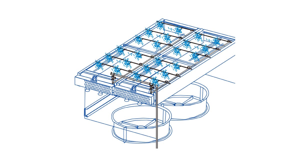 เราออกแบบเค้าโครงของหัวฉีดสเปรย์ เช่น ด้านล่างหรือด้านบนAir-Fin Cooler โดยพิจารณาจากความสามารถในการระบายความร้อนที่จำเป็น, ขนาดละอองสเปรย์, ความหนาแน่นของการไหลของน้ำ และจัดเตรียมระบบที่เหมาะสมที่สุดซึ่งปรับให้เข้ากับสภาพของตัวกลางระบายความร้อนในสถานที่ทำงาน