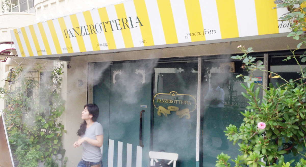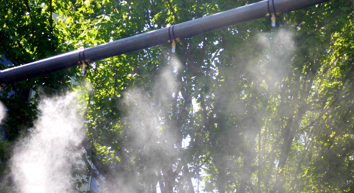 • It reduces temperatures by 3–5℃ with evaporative cooling of fog.