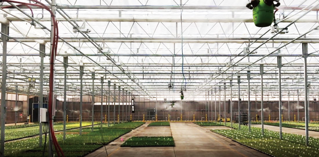 โรงเรือนเพาะปลูก Greenhouse ที่ Walters Gardens ติดตั้งอุปกรณ์เพิ่มความชื้นของละอองละเอียด AKIMist®