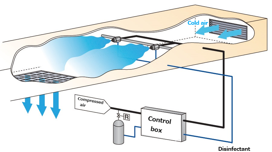 เรานำเสนอการฉีดพ่นแอลกอฮอล์ผ่านหัวฉีดที่ติดตั้งในท่อส่งลมเย็น